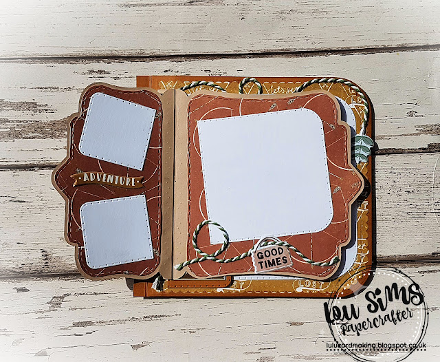 My base page is made using "Life's Journey" base creator dies and I've backed both sides with my chosen paper. Next taking using one of the decorative spine dies and the smaller pages - cut from Book of Special Memories outside edge - added the holes/slots on the crease side to both. Carefully transferring these marks to my base layer, I used the same die to create matching holes. If this instruction appears confusing, it is explained and demoed in the video - see HERE @ 29:10