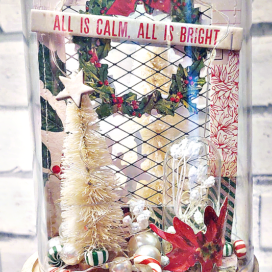 Now this large dome has a set of tiny lights woven in and out of all the embellishments. It's construction is very similar to the first dome but you can see other elements peering through the window.